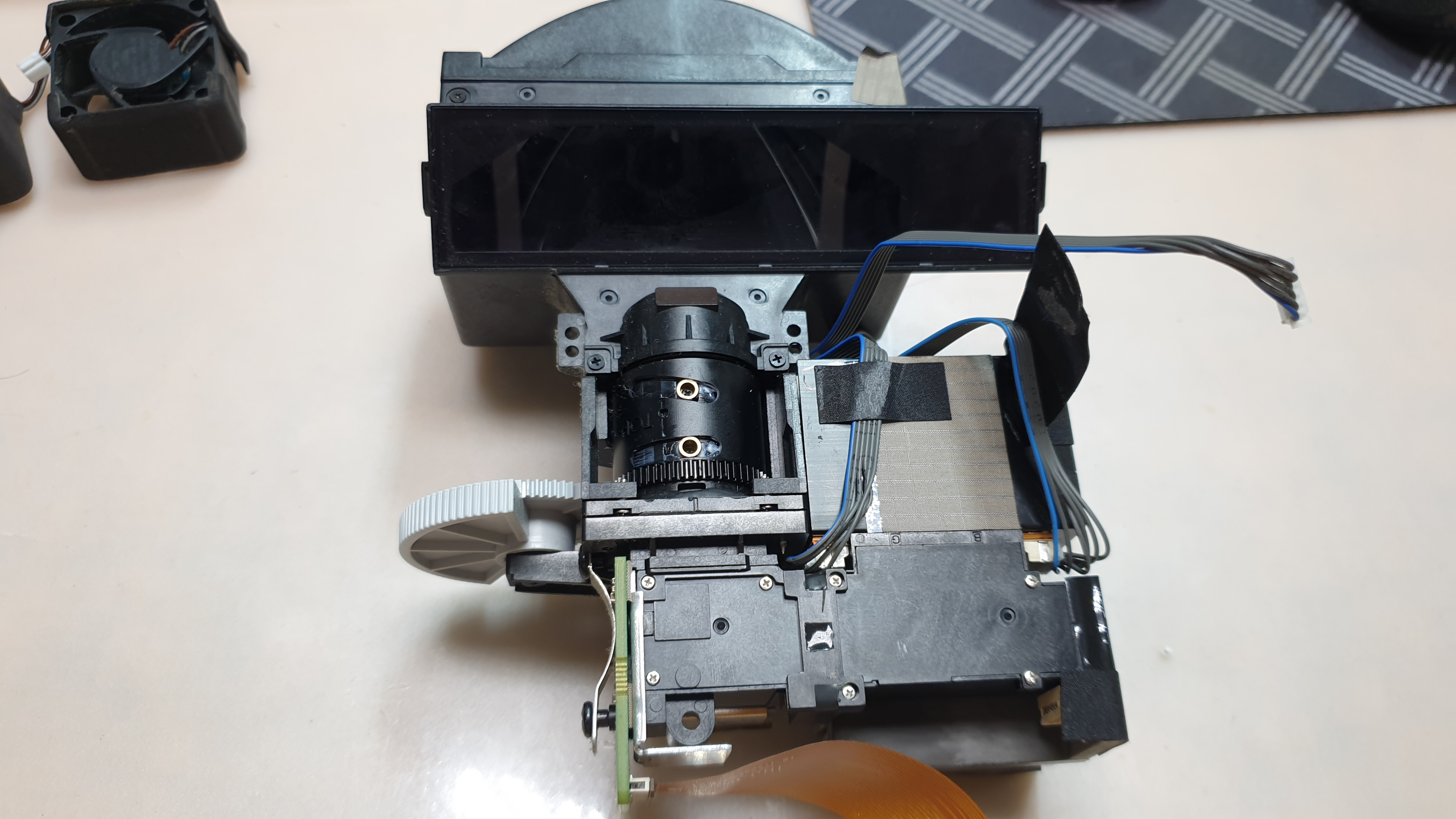빔프로젝터는 크게 케이스, 광학엔진, 메인보드로 이루어졌습니다. 그리고 내부에는 빔프로젝터의 과열을 막는 FAN쿨러도 존재하는데요.
