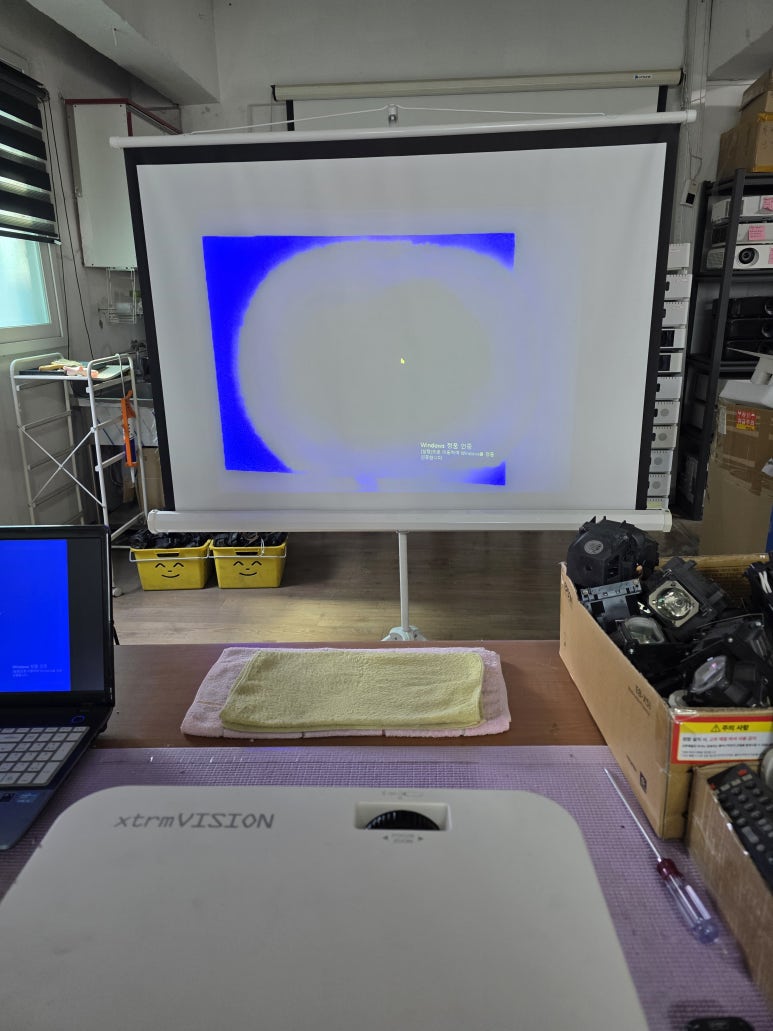 블루 쪽의 빔프로젝터 액정불량이